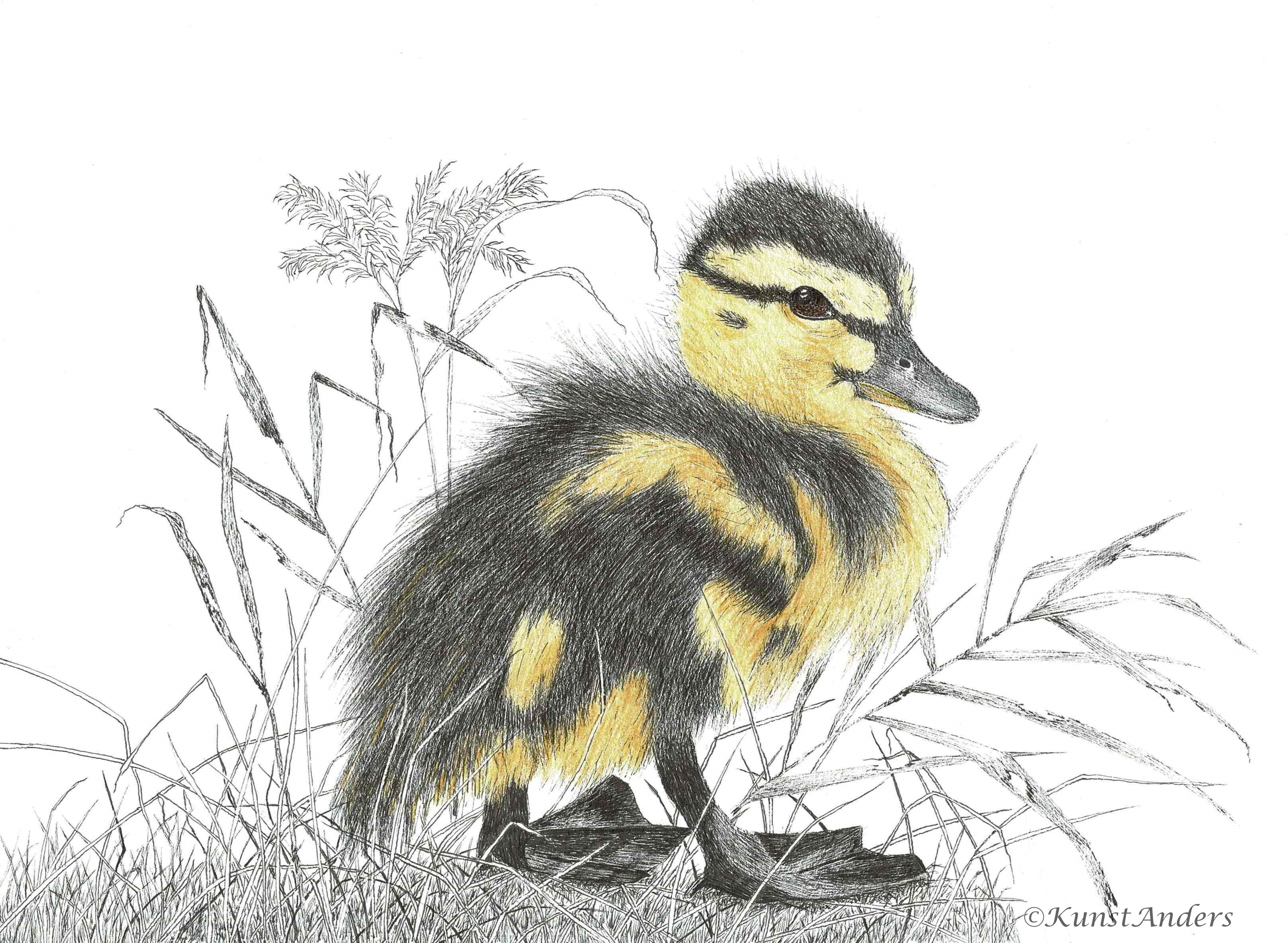 Pentekening en sneak preview gedicht Eendekuiken of pulletje (Anas platyrhynchos L.)