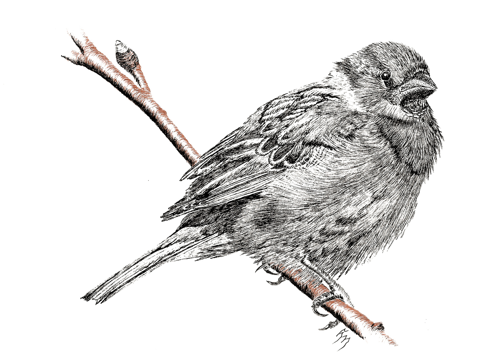 Pentekening en sneak preview gedicht Huismusje (Passer domesticus L.)