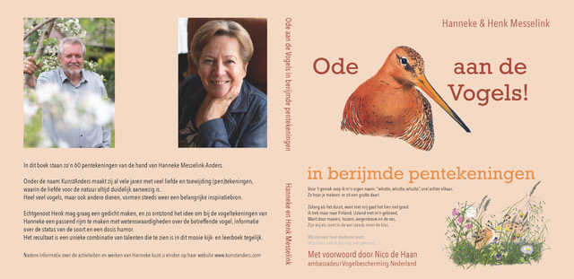 Het boek ‘Ode aan de Vogels, in berijmde pentekeningen’ is een unieke uitgave van 92 pagina’s met zo’n 60 gedetailleerde pentekeningen van vogels. Het boek wordt ingeleid door een voorwoord van Nico de Haan, ambassadeur van Vogelbescherming Nederland, en de tekeningen zijn voorzien van passende gedichten met allerlei wetenswaardigheden over de betreffende vogel in combinatie met een dosis humor. Een Must-Have Kijk- en Leerboek dat zowel liefhebbers van kunst als vogelaars zal aanspreken!
