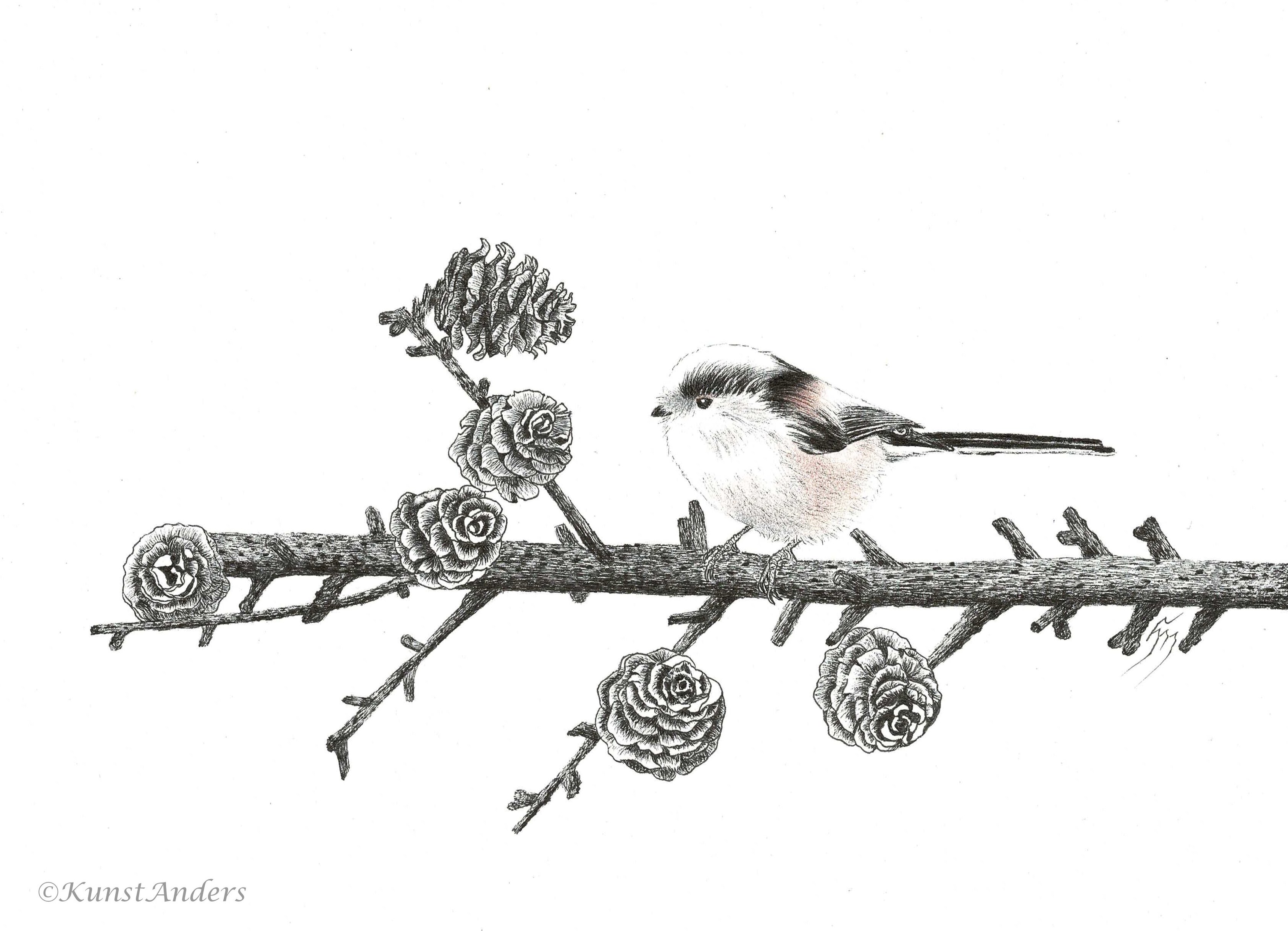 Pentekening en sneak preview gedicht Staartmeesje (Aegithalos caudatus L.)