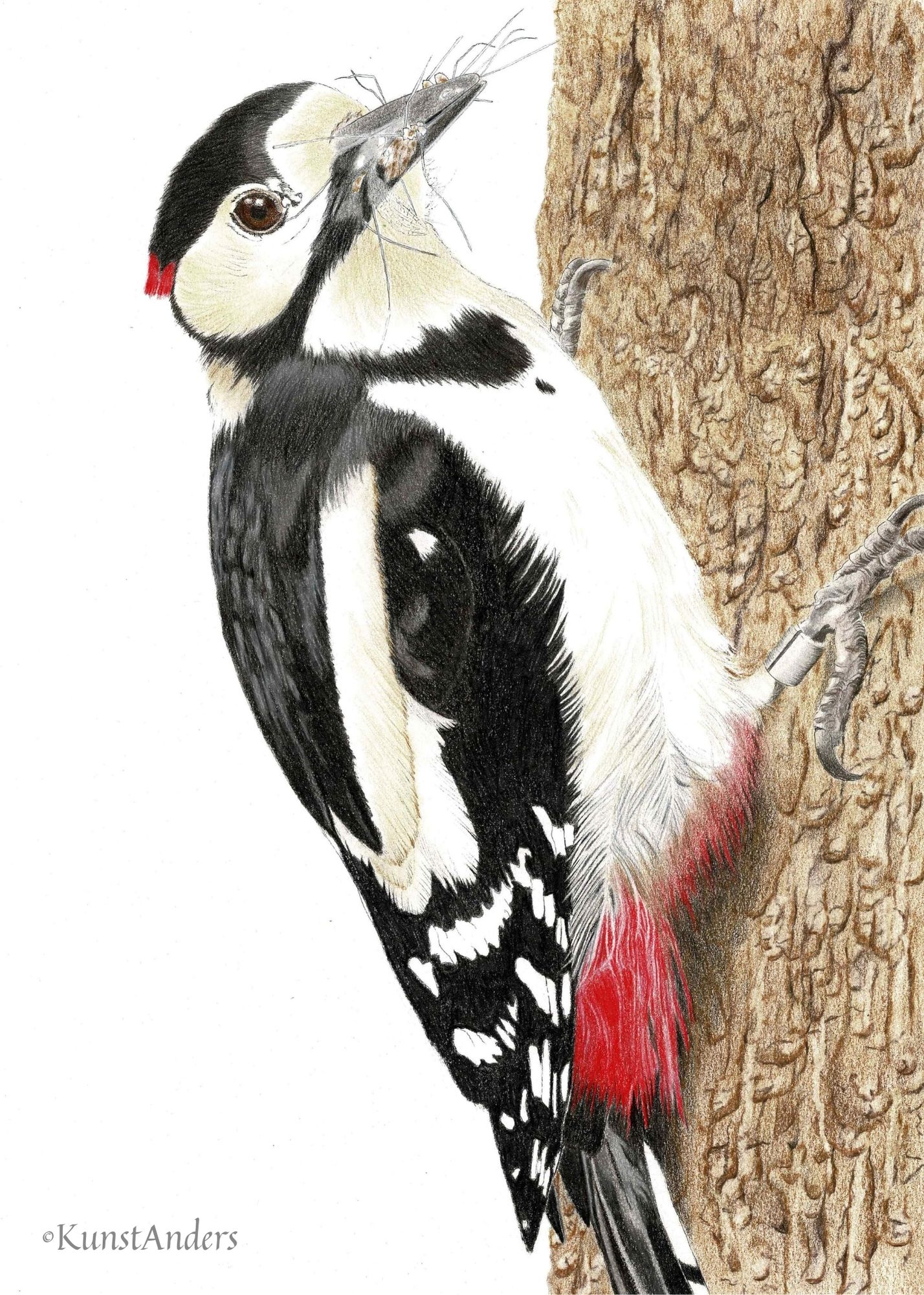 Pentekening en sneak preview gedicht Grote Bonte Specht (Dendrocopos major L.)