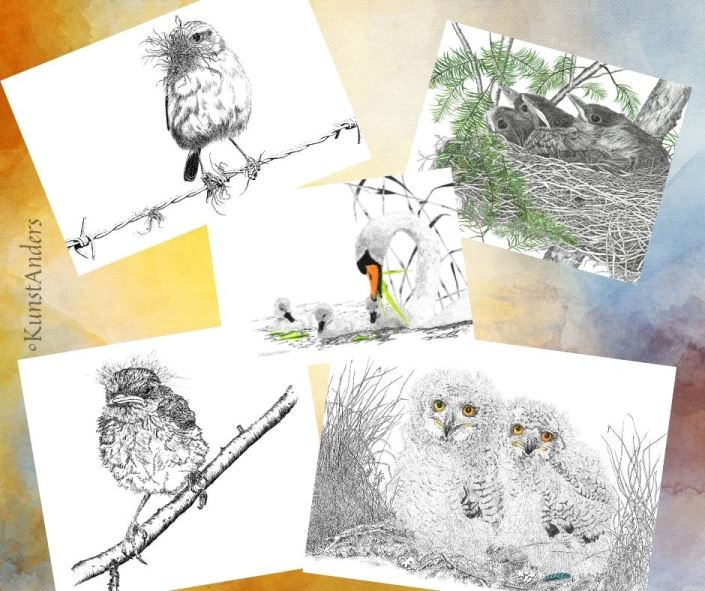 klaar Met veel liefde en plezier aan gewerkt en ook deze tekening weer verder uitgewerkt in de passe-partout, hoewel het altijd lastig is om daar een goede afbeelding van te maken..... Een mooi tafereeltje in een mooie habitat. De werkelijkheid laat helaas op veel plaatsen een ander beeld zien.....